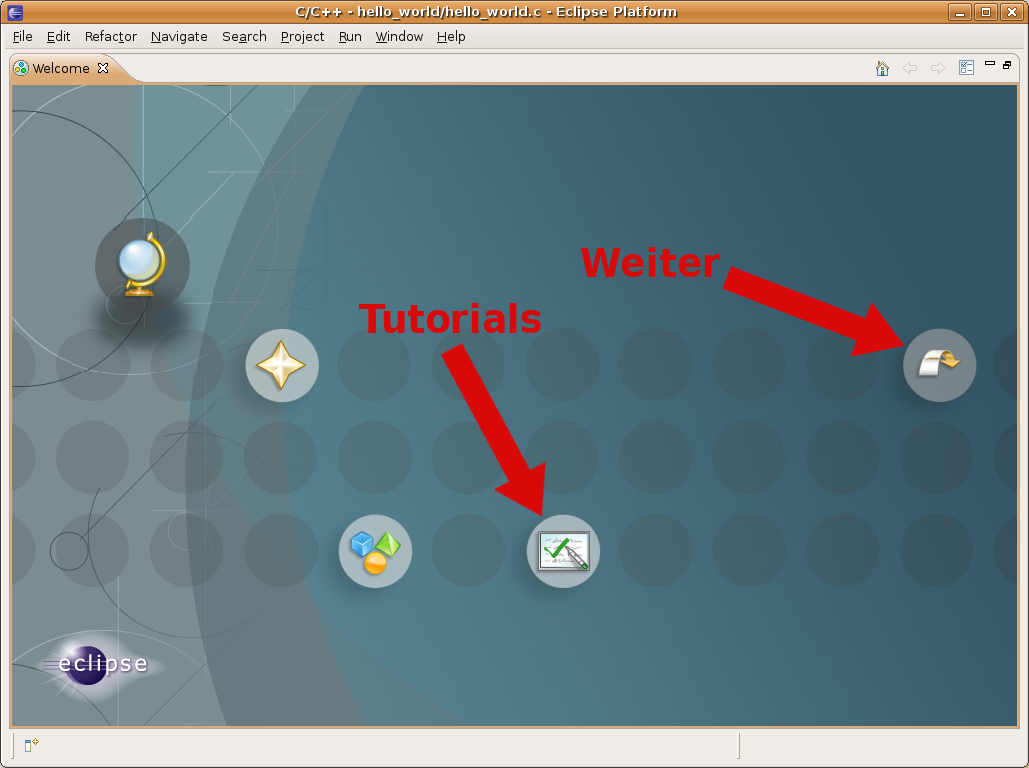 Als erstes müssen wir Eclipse starten. Normalerweise geht dies über den Menüeintrag