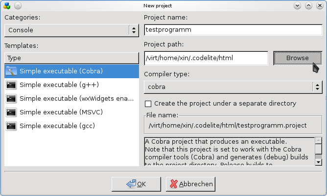 Projekt mit CodeLite erstellen