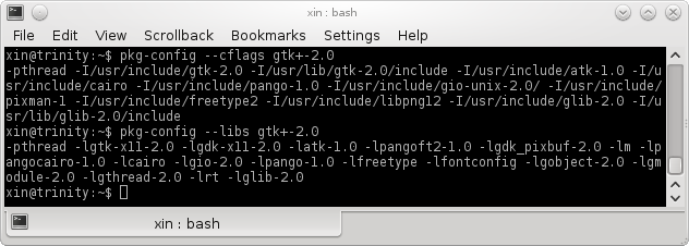Wir haben die Ausgaben von „pkg-config“ zuvor für Windows gesehen. Unter Linux sind die Ausgaben ähnlich:
