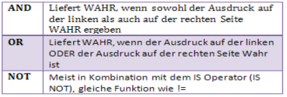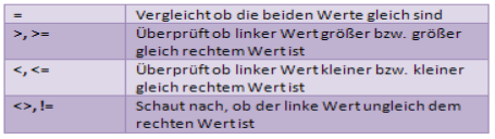 In der WHERE-Klausel kann mithilfe von 3 verschiedenen Operatorengruppen verglichen werden: