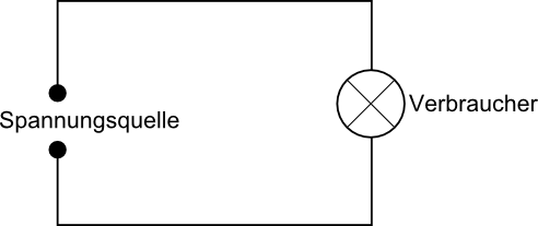 Man sieht, das die Quelle mit dem Verbraucher verbunden ist und dieser dann mit dem anderen Ende der Quelle, der Stromkreis ist somit geschlossen.
