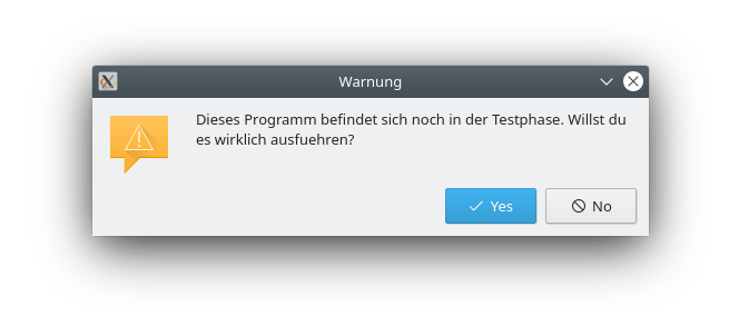 Da Messageboxen - wie bereits in der Einleitung erwähnt - ihre eigene Event-Schleife haben, können wir sie z.B. verwenden um zu fragen, ob das Programm auch wirklich gestartet werden soll: