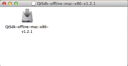 Ich habe mich für das vollständige Archiv entschieden und erhalte ein Disk-Image „QtSdk-offline-mac-x86-v1.2.1.dmg“, das durch Doppelklick zu öffnen ist: