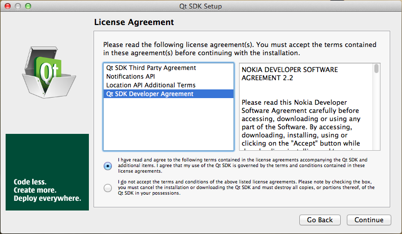 Ich habe diese Einstellungen nicht mehr verändert. Sofern man über Administratorrechte verfügt, kann man Qt natürlich auch woanders installieren und so für mehrere User verfügbar machen. Den Installationspfad merken wir uns aber nun - also bei mir hier /Users/Xin/QtSDK, denn diesen benötigen wir gleich nochmal. Auch installiere ich nur die vorgeschlagenen Pakete.