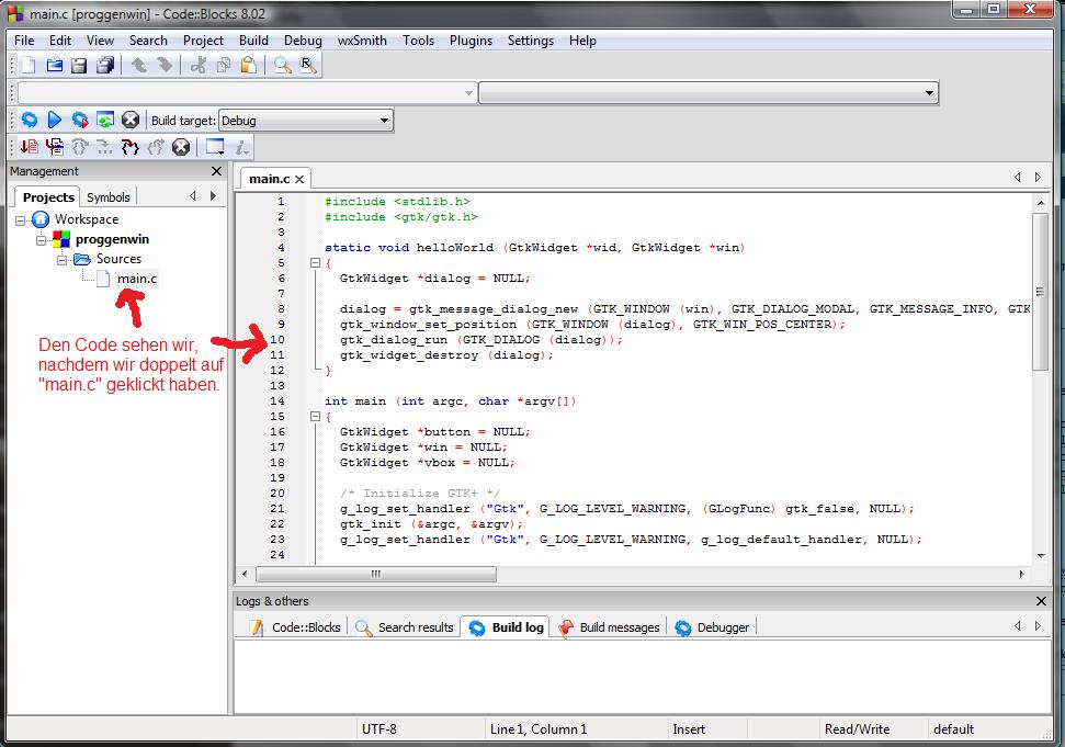 Somit wäre GTK installiert und ihr könnt Programme damit in Code::Blocks schreiben.