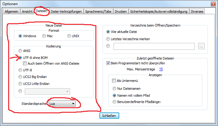 Ein Stück weiter unten finden wir zusätzlich die Standartsprache. Hier wählen wir Lua aus.