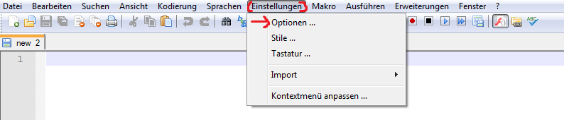 Nach der Installation müssen Wir uns unser Notepad noch ein wenig anpassen. Dafür starten Wir Notepad und klicken anschließend in der Leiste oben auf das Feld Einstellungen.