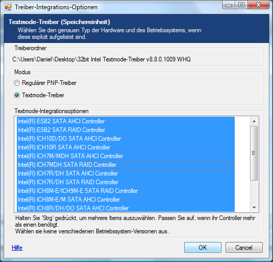 In dieser Anleitung wird ein Intel-Controller angenommen, dessen Treiber hier heruntergeladen werden kann. Dieser Treiber funktioniert nur für Intel-Controller!