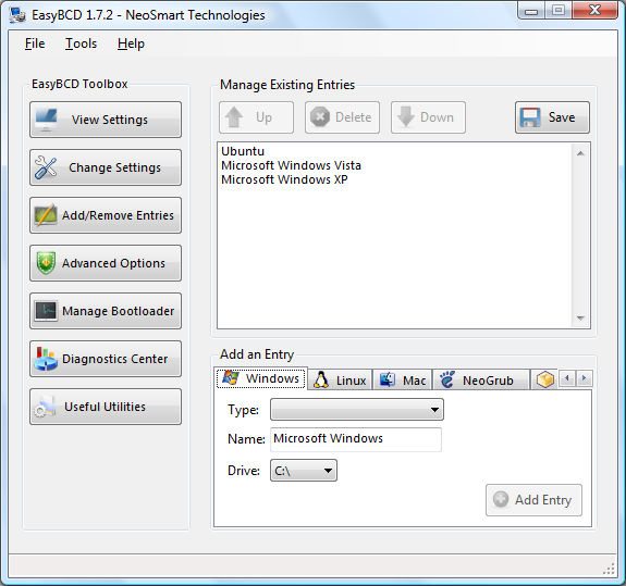 Für den unter Vista neu eingeführten Bootmanager gibt es standardmäßig nur ein schwer zu bedienendes Konsolenprogramm. Mit EasyBCD kann der Vista-Bootmanager nach belieben konfiguriert werden. Verschiedenste Einstellungen wie z.B. die angezeigten Namen für die Betriebssysteme können damit konfiguriert werden. Neben älteren Windows-Versionen können auch Linux und Mac Betriebssysteme zum Vista-Bootmanager hinzugefügt werden.